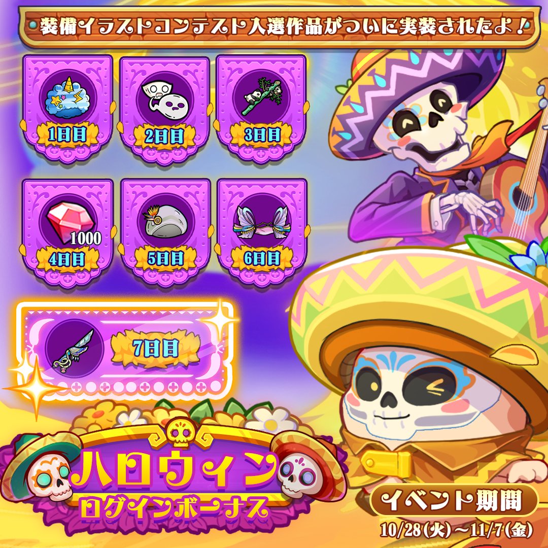 Happy Halloween!ログイン条件達成でハロウィンギフトを獲得でき、豪華な3点セットを2種類ゲットできます!今回のギフトはどれもイラストコンテストの受賞作品です。イベント期間中、毎日の報酬は1日1回のみ受け取れ、すべての報酬を受け取った後も進捗はリセットされません。