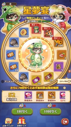 記念クエストをクリアする事により夢見コインが手に入りルーレットガチャを回すことが可能