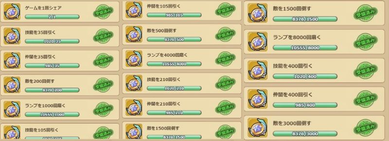 ルーレット報酬とは別に累計回数報酬がある。規定回数回す事により受け取りが可能