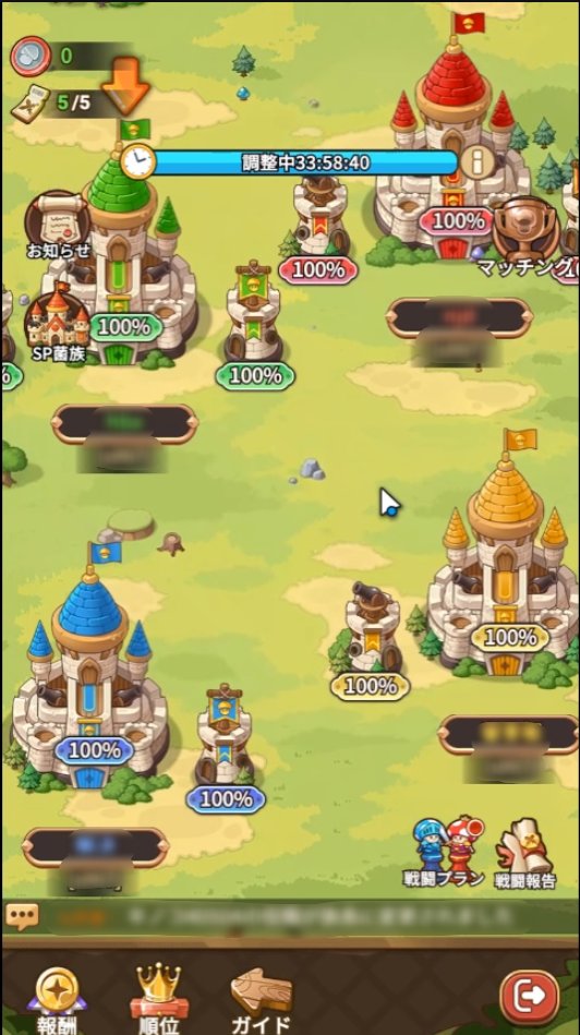 防衛建築物には【本城】1つと【旗塔】【砲塔】という2つの防衛塔があります。各建築物には一定数の菌族メンバーを配置でき、本城に進攻するには、対応する2つの防衛塔を先に破壊する必要があります。