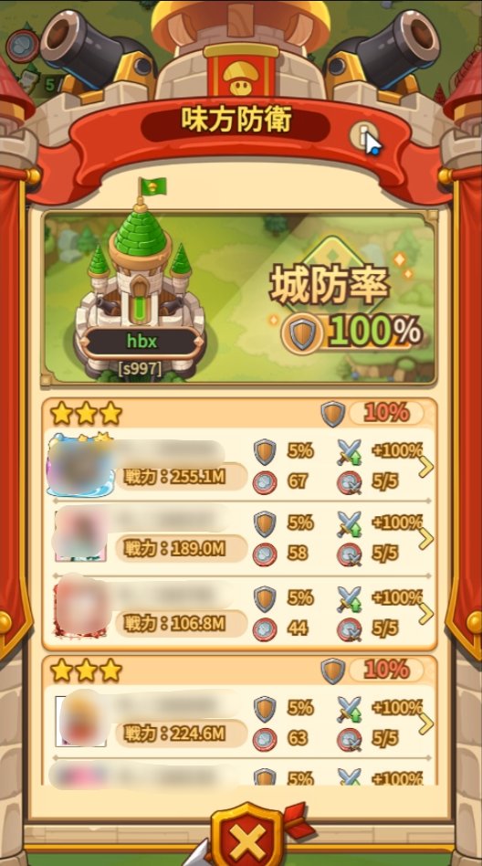登録成功後、菌族メンバーは戦力順に自動的に建築物に入り、チームを組んで防衛にあたります。建築物内の防衛プレイヤーが撃破されると、その建築物の城防率が低下します。防衛側が挑戦を受けるたびに挑戦CDが発生し、CD終了まで再度挑戦を受けることはありません。