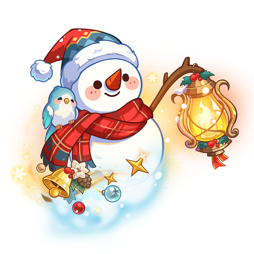 キャラが通常攻撃を10回行うたびに、雪玉を発射し、単体目標に200%の現在通常攻撃ダメージを与える(会心可能)。連撃を10回行うと、雪玉を発射し、単体目標に200%の現在連撃ダメージを与える(会心可能)。反撃を10回行うと、雪玉を発射し、単体目標に200%の現在反撃ダメージを与える(会心可能)。発動技を2回発動すると、雪玉を発射し、単体目標に1000%の技能ダメージを与える。