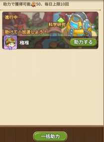 ギルドメンバーの待機時間の短縮を支援できる。1回の助力につき30秒短縮され、支援された人のメールに結果が届く