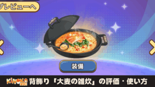 10/1より始まったダンジョン飯コラボの前半イベントにて実装された、背飾り「大麦の雑炊」の性能とその評価、使い方をまとめていきます。