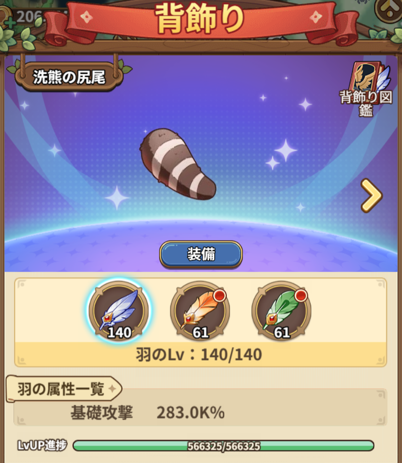 背飾りの攻撃・体力・防御のLv上限は現在140ですが、250に引き上げられました。
