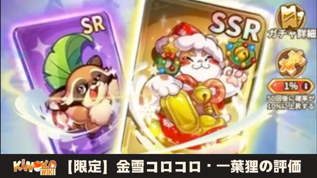 1/1より実装された限定星将SSR「金雪コロコロ」SR「一葉狸」の評価についてまとめていきます!