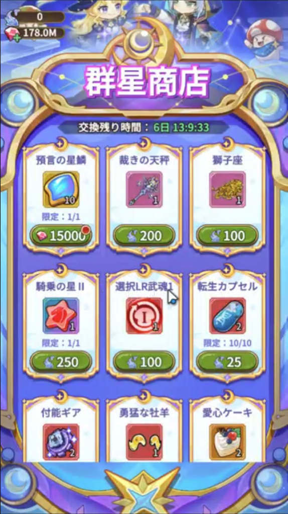 限定ガチャで獲得できる装備だけでなく、1000天井騎乗を強化することができる騎乗の星Ⅱなどが交換できます。他にも、限定外観・髪飾り「勇猛な牡羊」も獲得できます。
