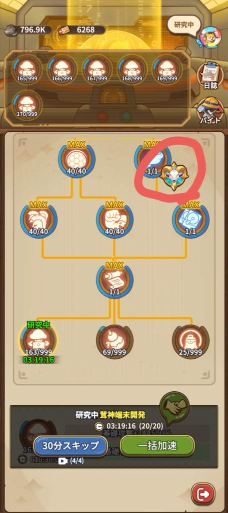 場所:箱庭画面内の「研究」の右上