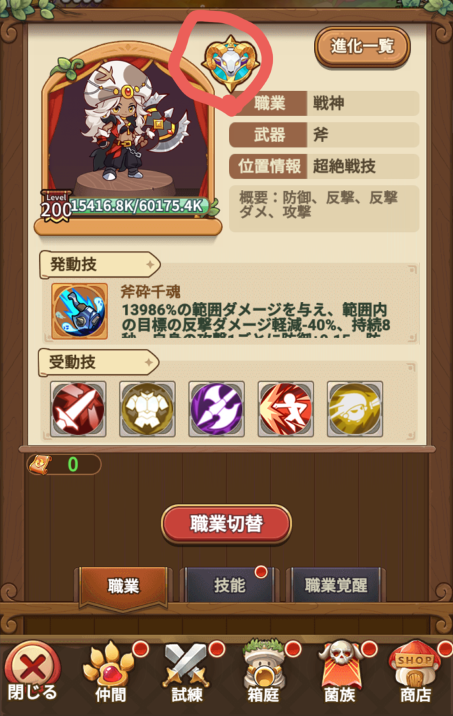 場所:職業画面の上部