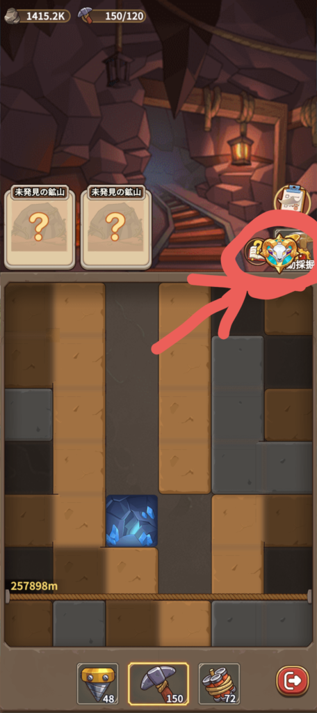場所:箱庭から開く鉱山の右上(自動採掘の場所)