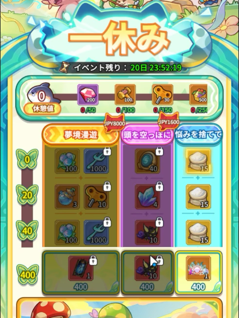 - イベントパス「一休み」でイベントアイテム・小麦粉を獲得する