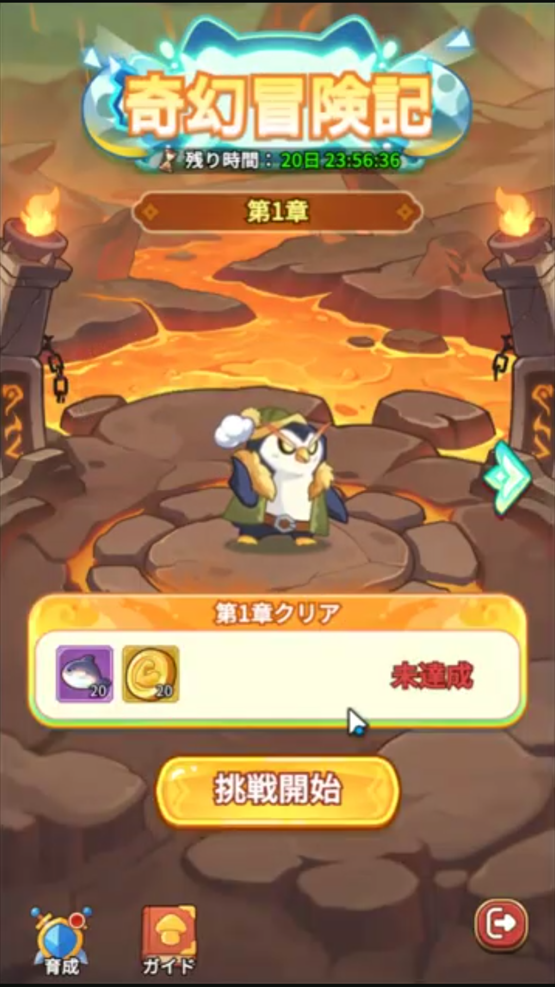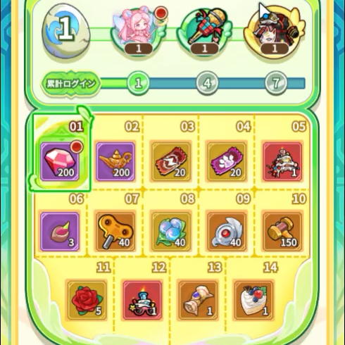 全14章からなる冒険記で、最初の14日間は毎日1章ずつ開放されます。本コンテンツでの育成状況はメインから独立しています。章をクリアして、報酬を受取、育成資源を解放して、戦力をあげましょう。(ゲーム内ヒントより引用)