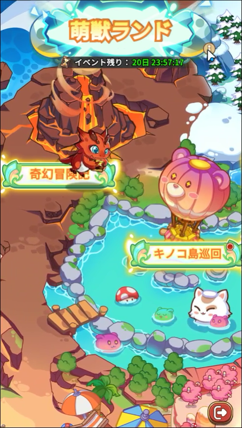 1画面に収まらないくらい広いイベントマップです!園内に入ると、マップ上に確率で仲間やペットが出現します。仲間やペットをタップすると報酬を受け取ることができ、最大5回まで獲得できます。