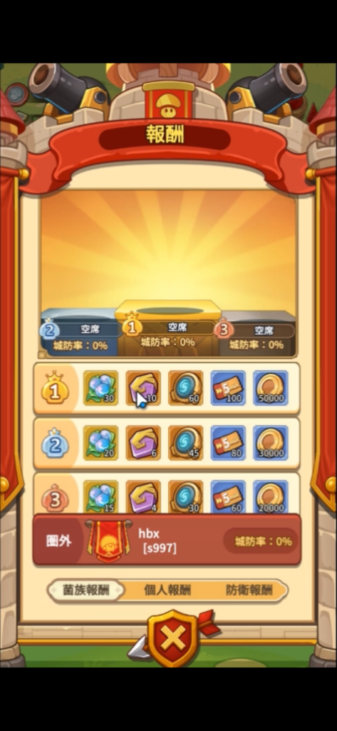 4週間ごとに行われる越域菌族対抗バトルコンテンツ。4つの菌族がマッチングし、各菌族が有する城を守るプレイヤーを倒して城を落としていくゲーム。