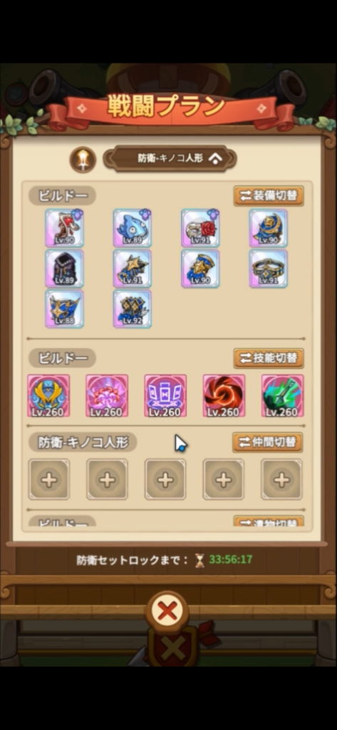 キノコ人形と武道会のように戦うため、自分のビルド以外にもキノコ人形のビルドをセットする必要があります。
