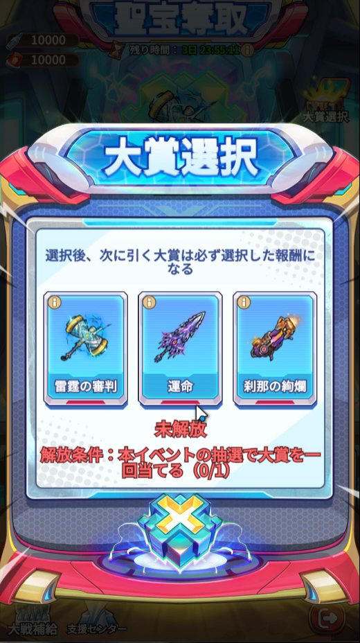 神器・背飾りを獲得することができます!選択大賞は、運命