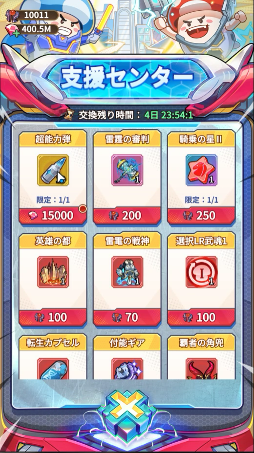 永続の速度アップ系は確かに強いです。数値も悪くはありません。しかし、次のスーパーヒーローイベント後半で出てくる神器は、海外版キノコ伝説のサーバーの環境をぶち壊した「クロノループ」だとわかっている状況だと、急いで使う必要はなさそうです。