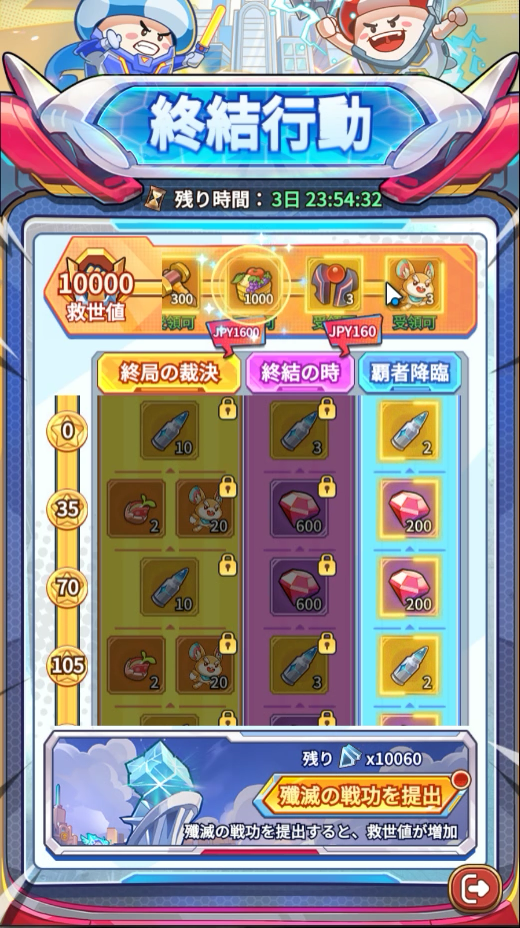 や、特級種子など様々なアイテムが獲得できます。また、オリジナルの限定外観(死神の意志・生存と破滅)も獲得できます。ピヨ飛鼠は、1600円パスだけでなく、画面上部の救世値報酬520でも獲得可能です!