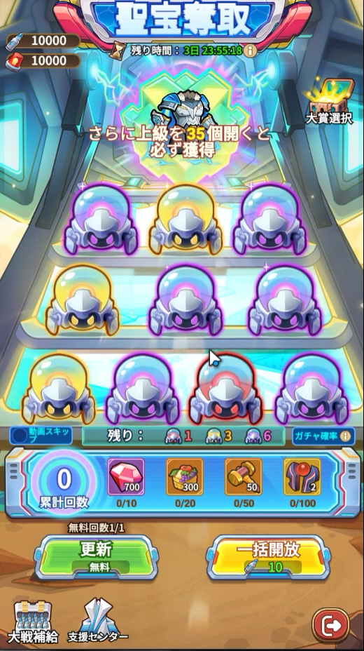 | JPY8000 | 3回 | 赤ダイヤx12000+選択アイテム2種 |