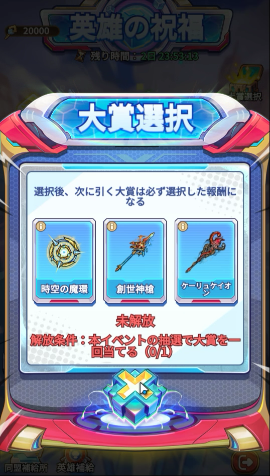 神器・背飾りを獲得することができます!選択大賞は、創世神槍