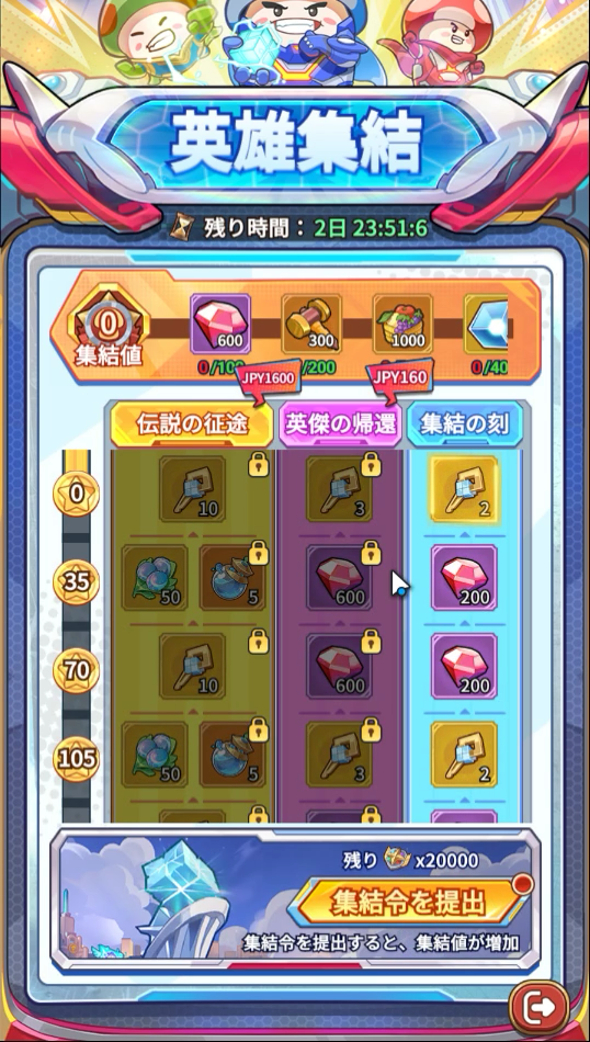 上下から伸びる柱を避けて進むミニゲームです!こちらのミニゲームはガチャアイテムだけでなく、限定の発言枠「会心の一撃」も獲得できます!無料の発言枠は是非取っておきたいですね!