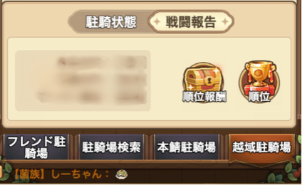 なお、サーバー内の個人駐騎場の場合、倒すと駐騎中に稼いだ茸騎コインなどが獲得できますが、越域駐騎場では何も獲得できません。