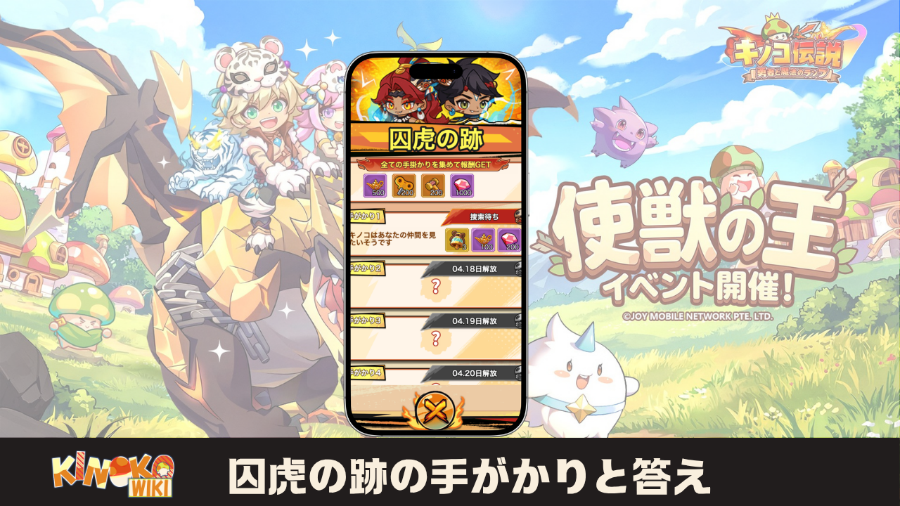 この記事では、イベント「使獣の王」内のコンテンツ「囚虎の跡」で毎日解放される手がかりに対応する答えをまとめます。イベント期間中(4/17〜4/23)毎日0:00-8:00に更新します!